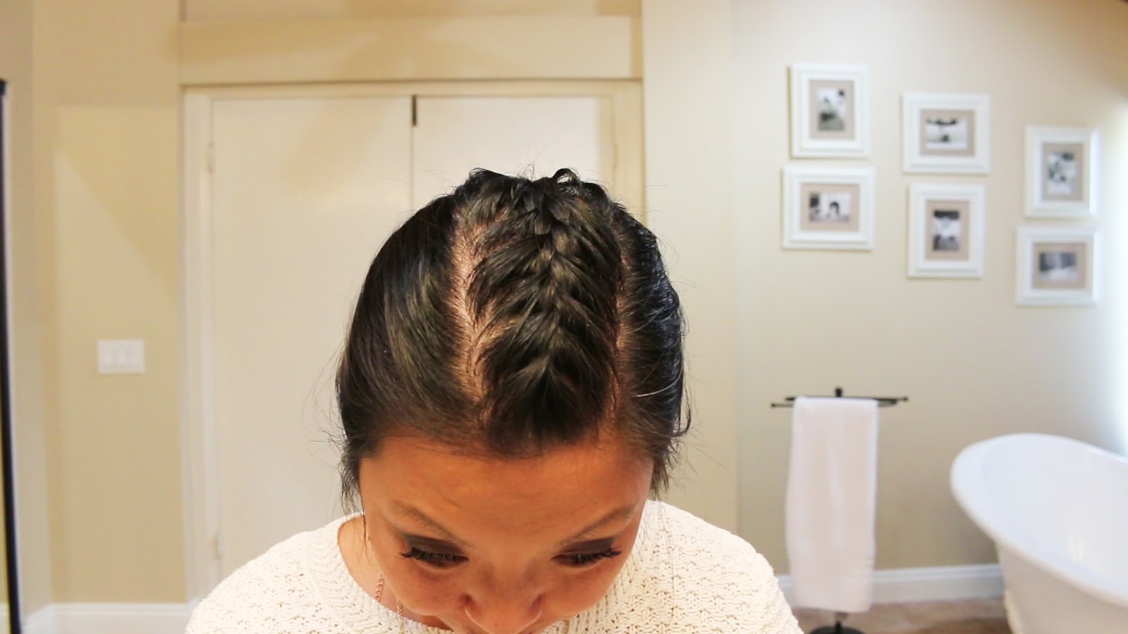 Start a mini French braid. Normally when you do a French braid you add in larger chunks of hair, but for this you are going to want to add in the smallest chunks of hair possible.